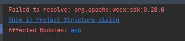 在gradle声明依赖,sync的时候依赖一直拉不下来,提示Fail to resolve: org.apache.weex:sdk:0.28.0,尝试过换阿里云镜像、走梯子,依然无法获取到依赖。