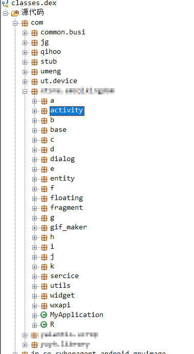 打码那些是目标软件包名,不知道其他软件加壳是不是也是这样的,如果是的话那直接在源码找包名就行了。