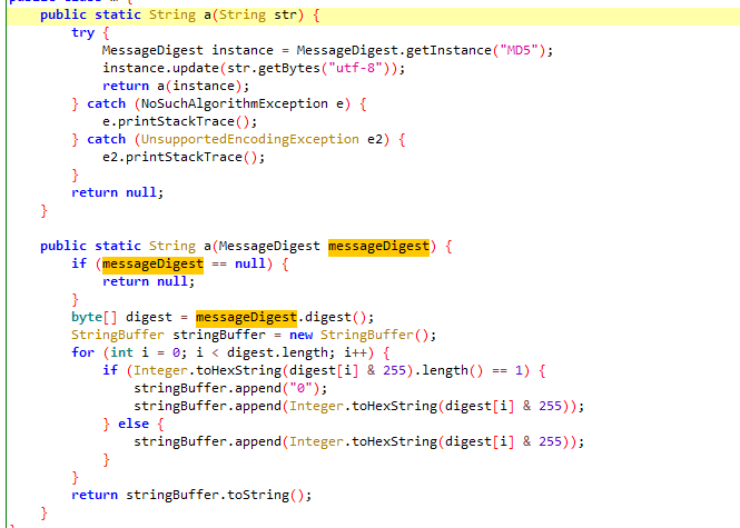 共两个方法相关联,经过百度,第一段和php的md5函数一致,第二段作用暂时不清楚,经测试转换成php