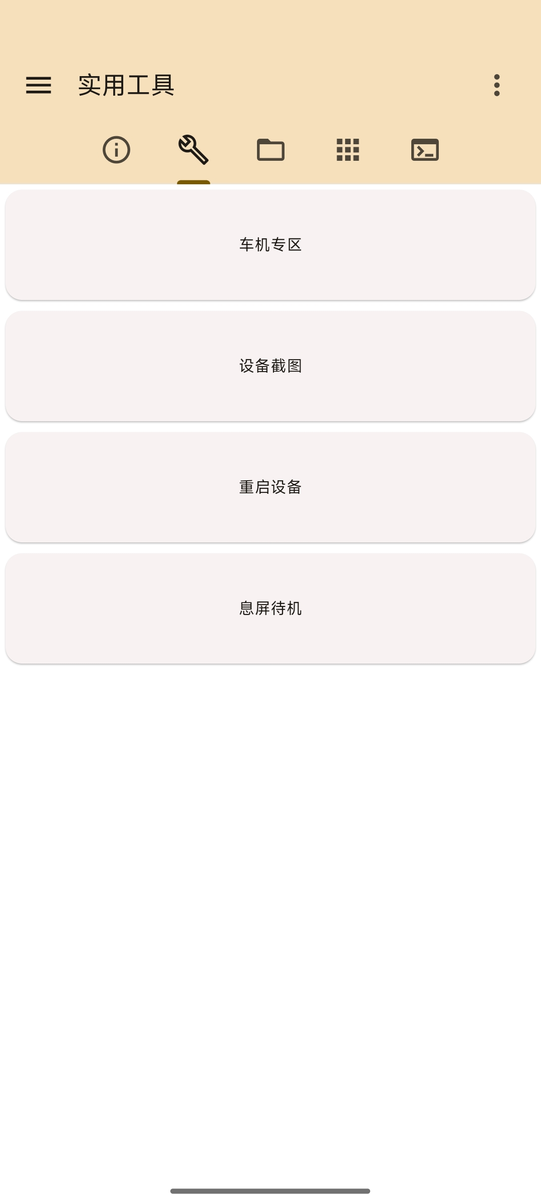 集成了一些常用工具,如设备息屏亮屏、车机工具等。